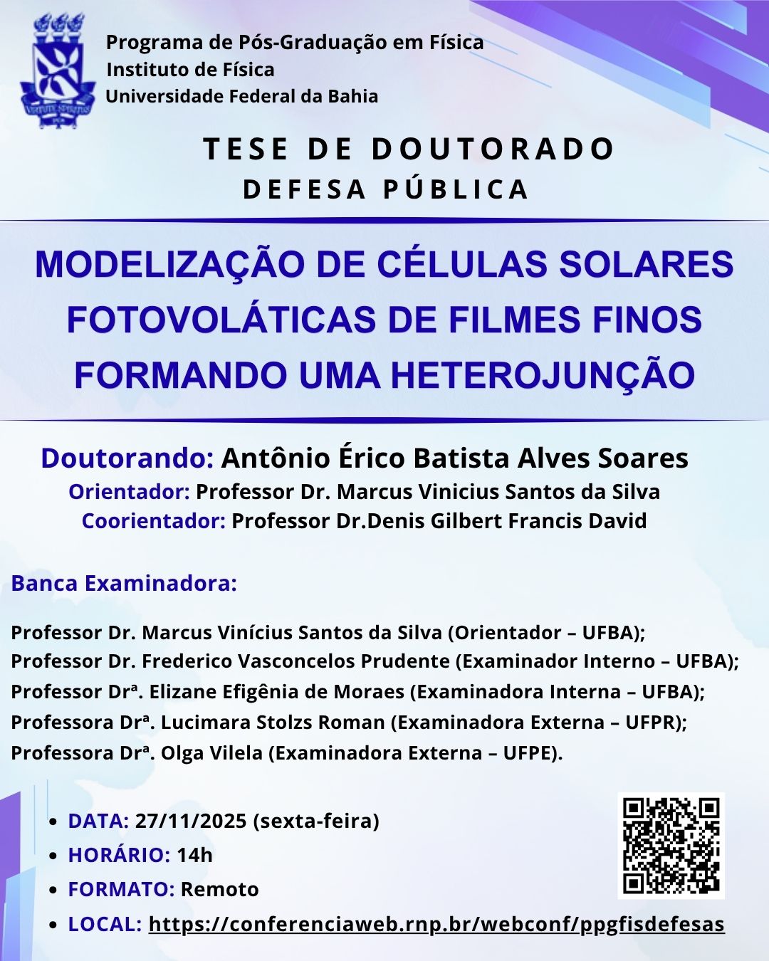 Defesa de Doutorado: Modelização de células solares fotovoláticas de filmes finos formando uma heterojunção